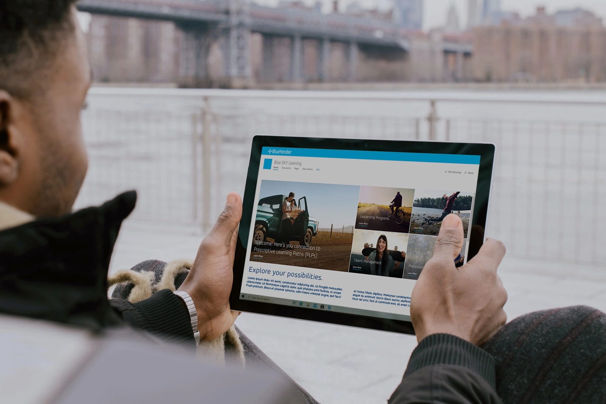 Showing people doing activities in their lives outside of work helped illustrate the fact that learning never stops. This approach also helped give the vibe that Blue SKY Learning understands associates have a life outside of work, while still promoting learning and growth at work as well.